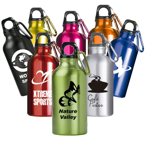 Botellas de aluminio con alta protección térmica, ideal para el contacto con alimentos fríos o muy calientes, capacidad 400 ml. Incluye mosquetón de aluminio para su fácil transporte.